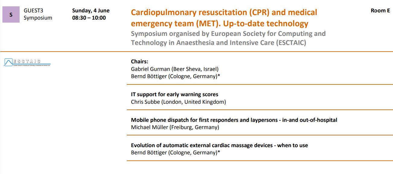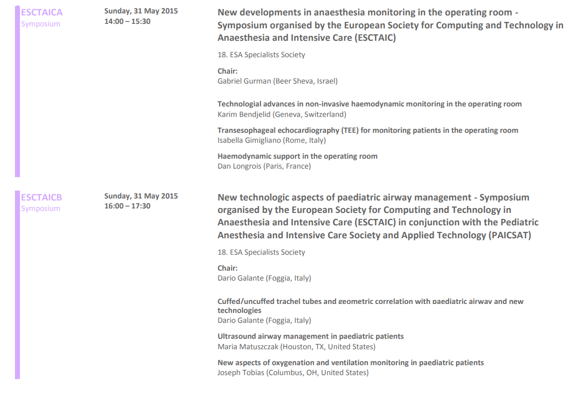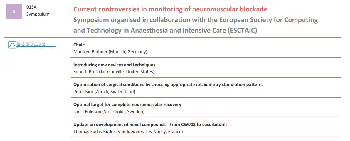 | 2021 | Symposium | Euroanaesthesia - Munich | Dec. 17-19 (virtual/on site) | programme | ||