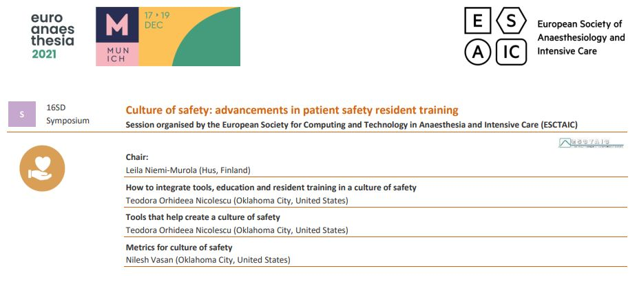 | 2021 | Symposium | Euroanaesthesia - Munich | Dec. 17-19 (virtual/on site) | programme | ||